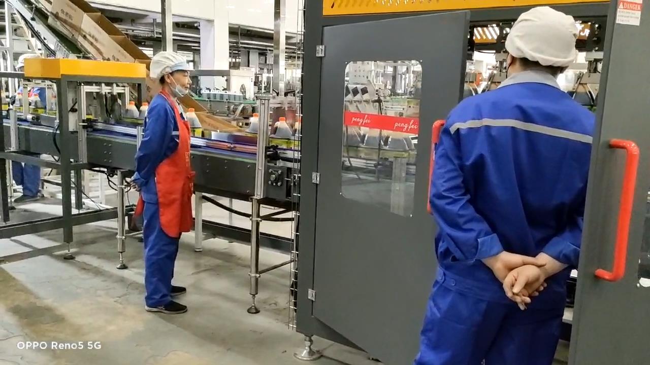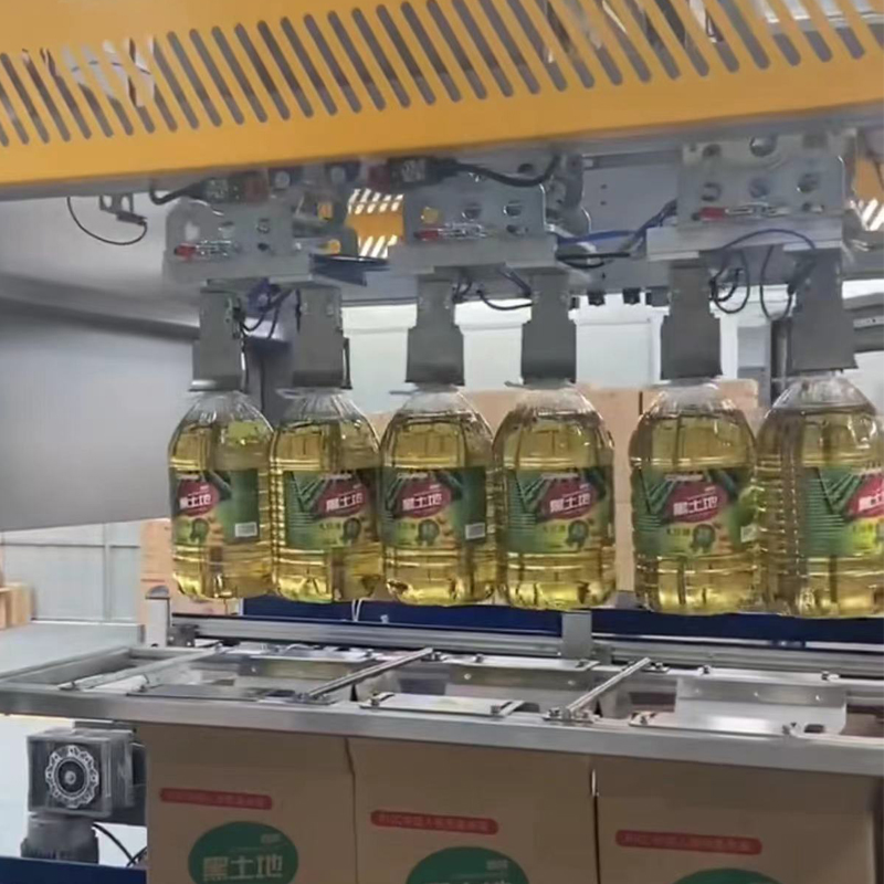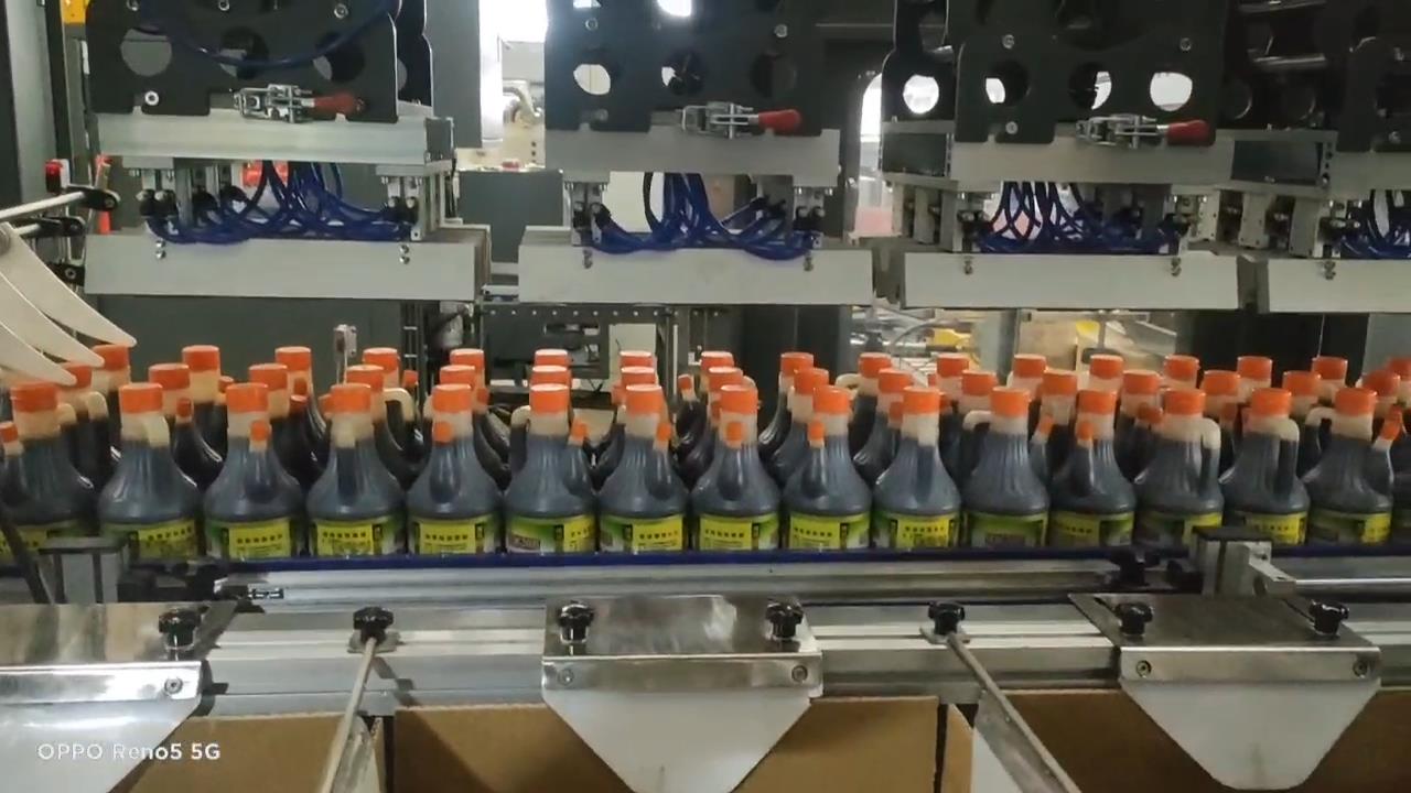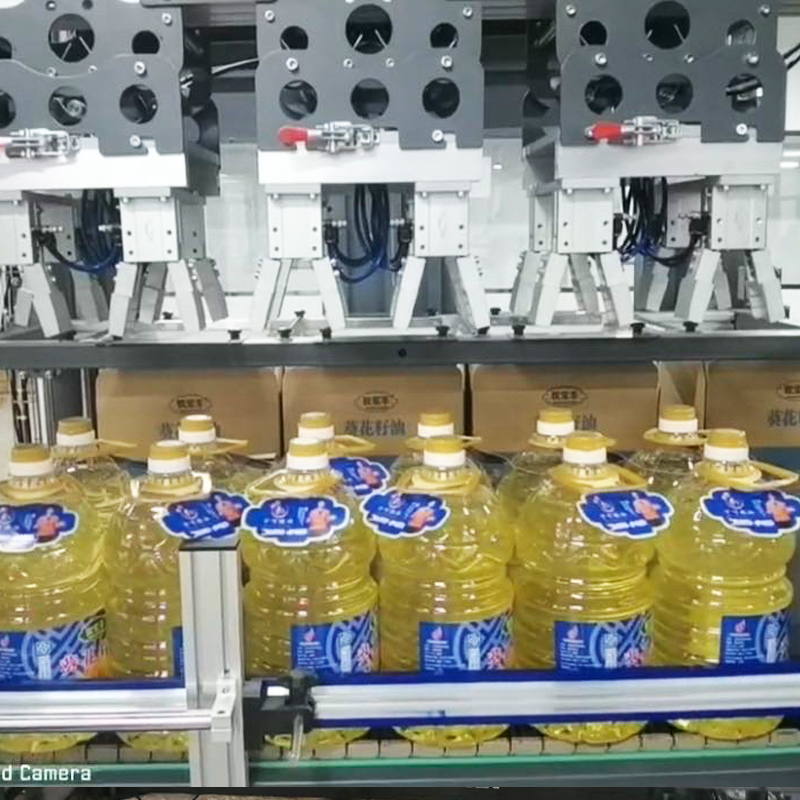 本设备为抓取式装箱机,适用于各类PET、PVC材质瓶型,装箱速度为2000瓶小时(5L),由三菱可编程控制器自动控制进瓶,装箱等过程,并采用进口电器元件和气动元件,保证系统运行稳